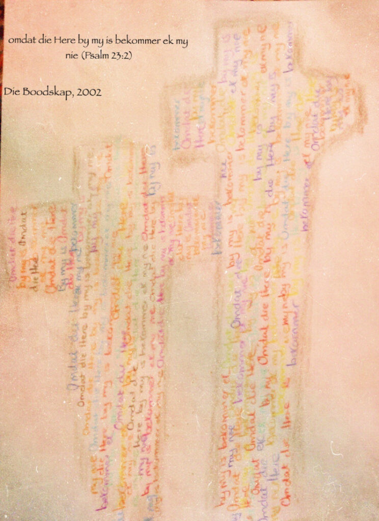 Ek is bly dat ek vandag deel kon wees van ‘n Online Silent Retreat. Ek volg die riglyne, ons fokus op die bekende Psalm 23. Ek besluit om dit in Afrikaans te lees en my hart fokus op die tweede vers in Die Boodskap.